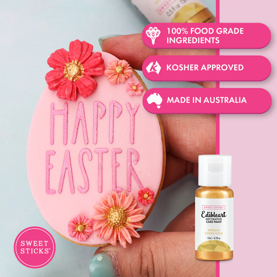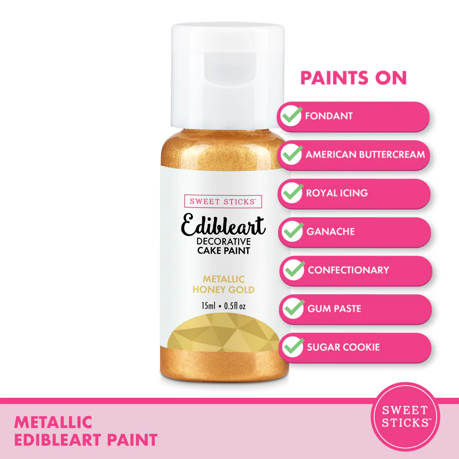 Side note: Our metallic paint works on some royal icing recipes but not on all therefore we do not recommend painting on royal icing. If you have success please share your recipes for others to enjoy.