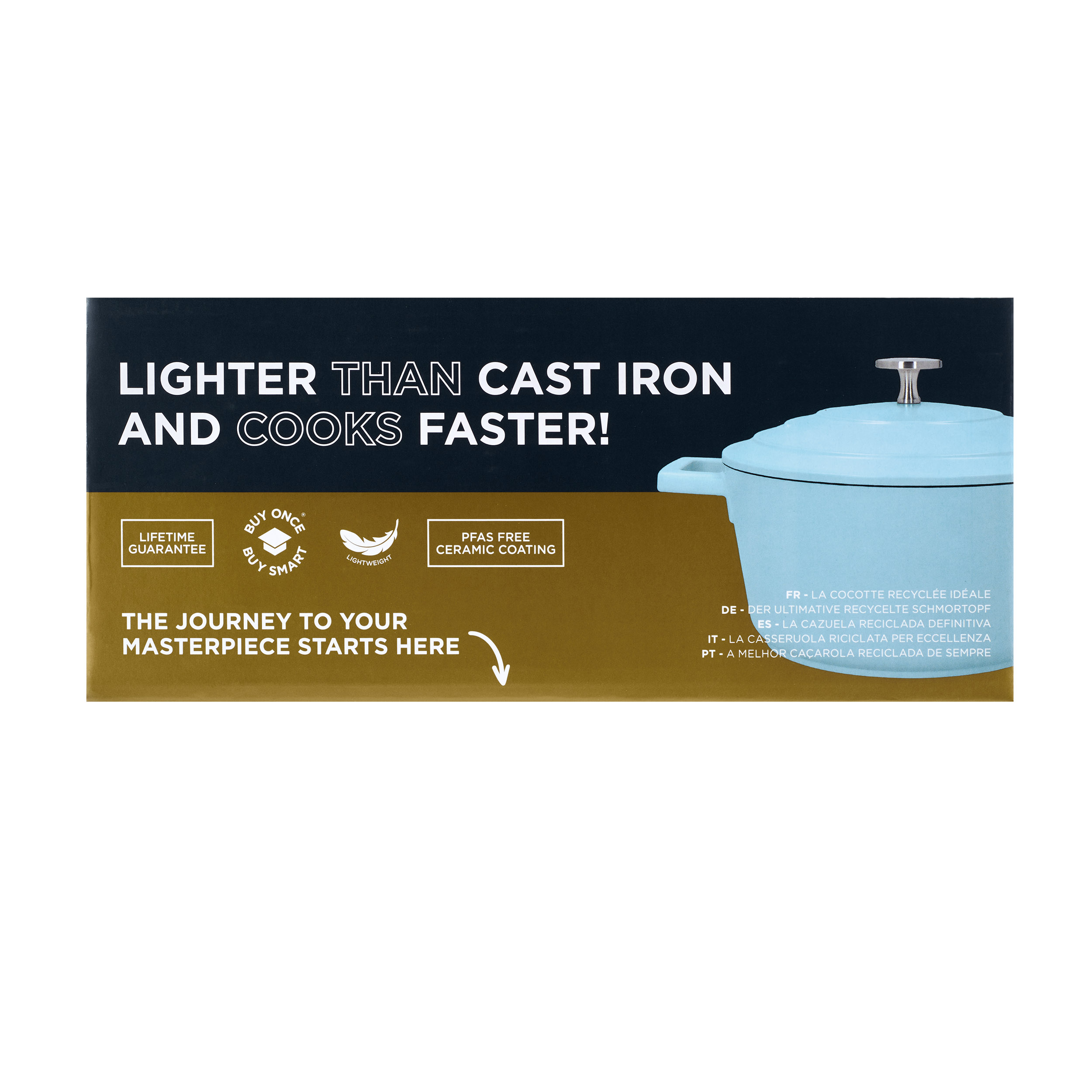 Made with recycled materials and containing zero PFAS. This casserole pan is as light as a feather thanks to its aluminium structure and also has a ceramic coating on the inside.