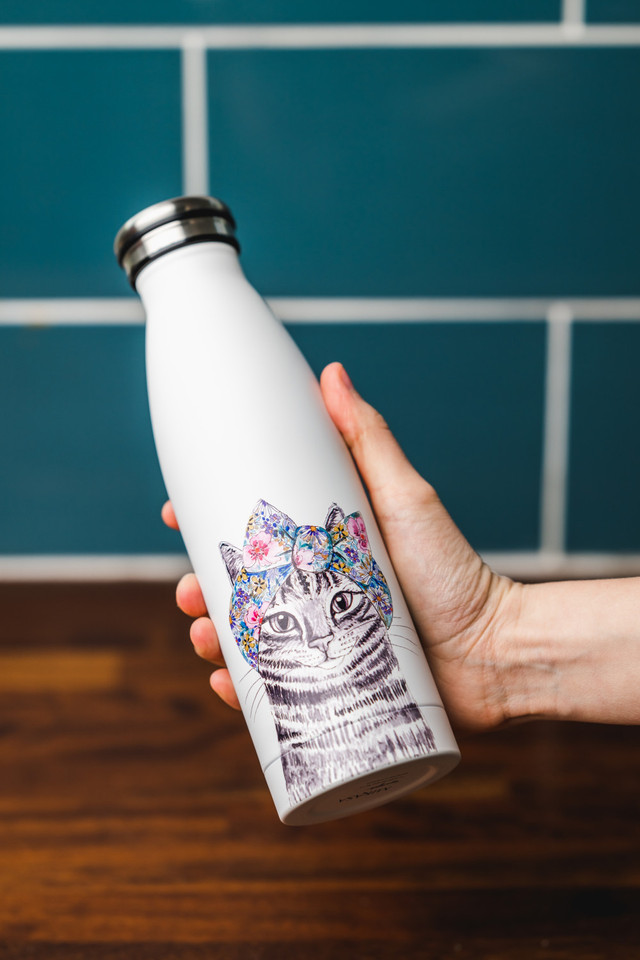 Part of the Mikasa x Tipperleyhill collection, this Cat Print Double-Walled Stainless Steel Bottle is an attractive hydration accessory to add to your commute. Featuring an exclusive hand-painted design of a lovable cat by renowned artists Tipperleyhill, this insulated water bottle won’t just keep you hydrated throughout the day but also look great. Made from high-quality stainless steel, this 500ml bottle features double-walled vacuum insulation that keeps your drinks hot for 12h and cold for 18h. Whether you’re headed to the gym, on a hike, or just running errands, this bottle will keep your drinks at the perfect temperature all day long. The water bottle comes with a 12-month guarantee. Due to the nature of the design, we recommend handwashing.