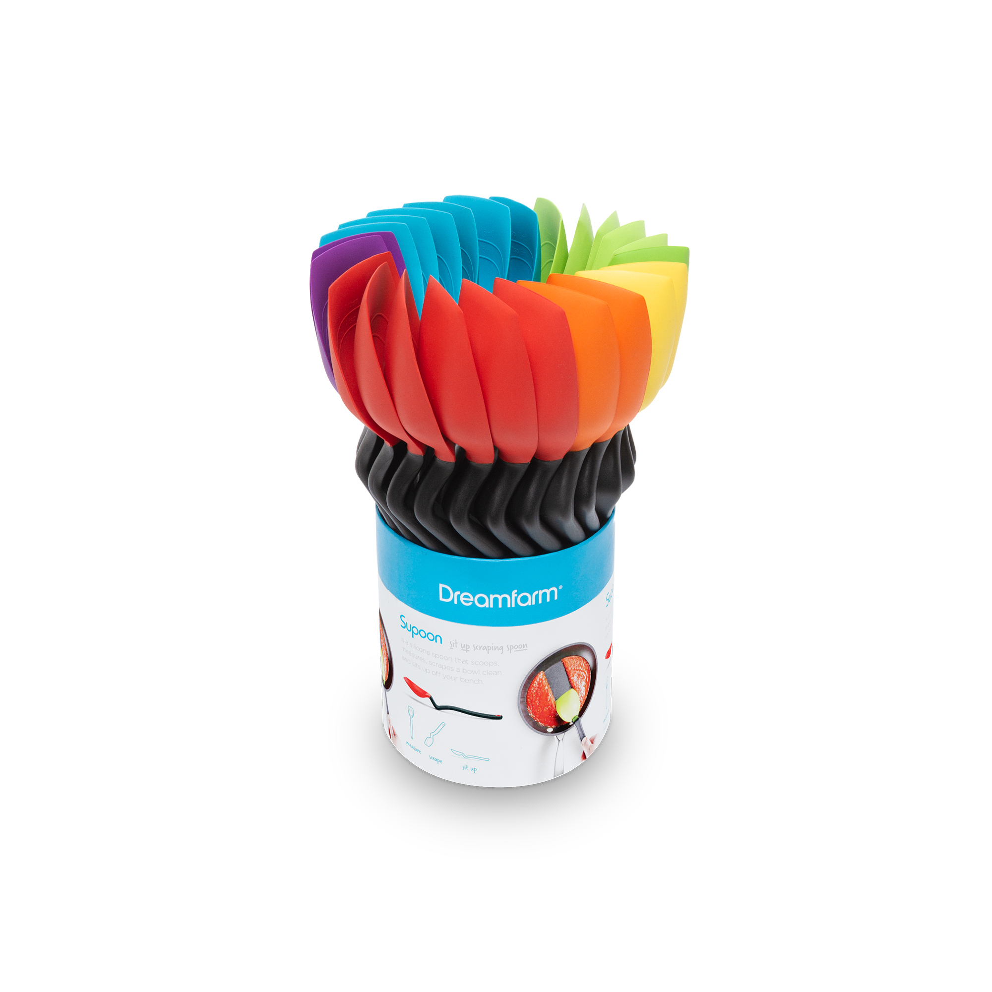 The Dreamfarm Supoon is one of our favourite kitchen gadgets – scoop, scrape, and stir with one handy tool! The Supoon’s head has a flat flexible tip and equally flexi sides that allows you to reach right into the corners of any jar or pot to scoop out that last little morsel! It has plenty of depth for quickly scooping and serving, and moulded markings that allow you to measure 1 tablespoon or 1 teaspoon.