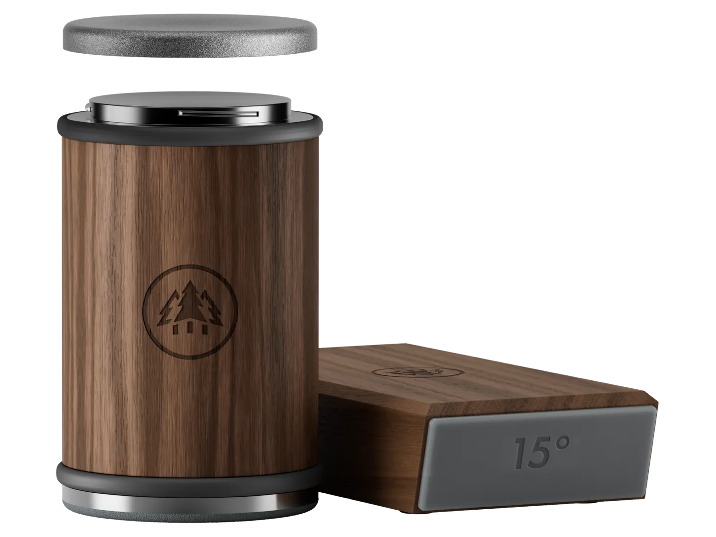 The graphite finish of the HORL Dock stylishly contrasts the oak and walnut cases of HORL2 sharpeners.